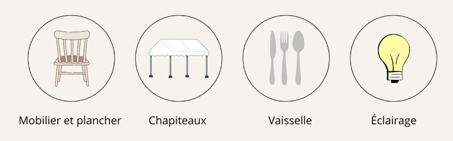 Notre cœur de métier est la location de chapiteaux et de matériel événementiel (vaisselle, mobilier, parquet...). Nous proposons différentes tailles et configurations de chapiteaux pour s’adapter parfaitement à votre événement : tentes modulables, structures professionnelles, chapiteaux pour mariage...